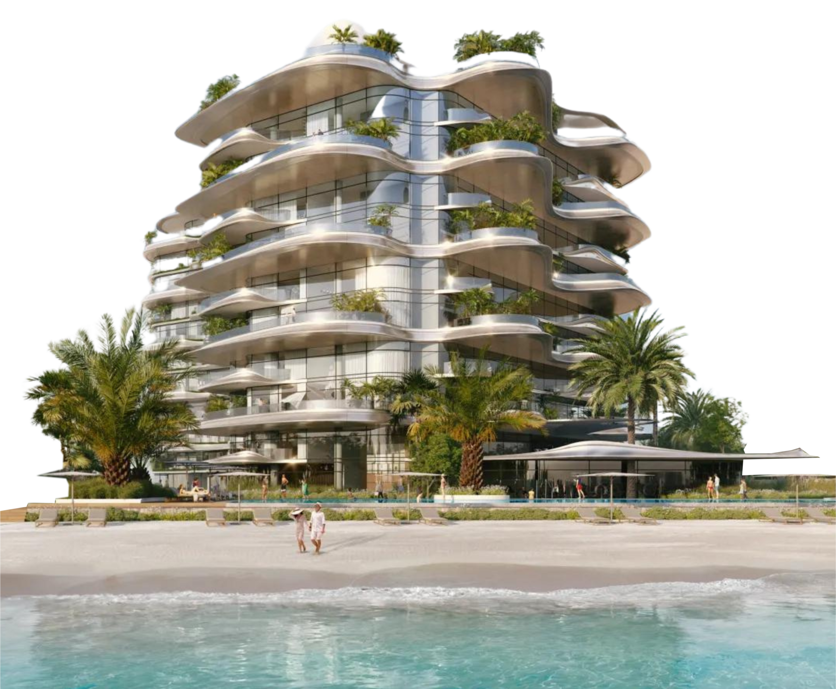SLS Residences on Palm Jumeirah, designed by LACASA, is crafted in harmony with nature. Its undulating exterior reflects the energy of the sea, maximizing open living spaces, shade and privacy. High ceilings and the use of sustainable materials in all residences create a soft and ethereal atmosphere. Enjoy calm and uninterrupted 360-degree sea views, while benefiting from world-class amenities, including a signature spa, infinity pools, and gourmet dining options, all offering a truly unparalleled lifestyle in one of the most iconic locations in Dubai.